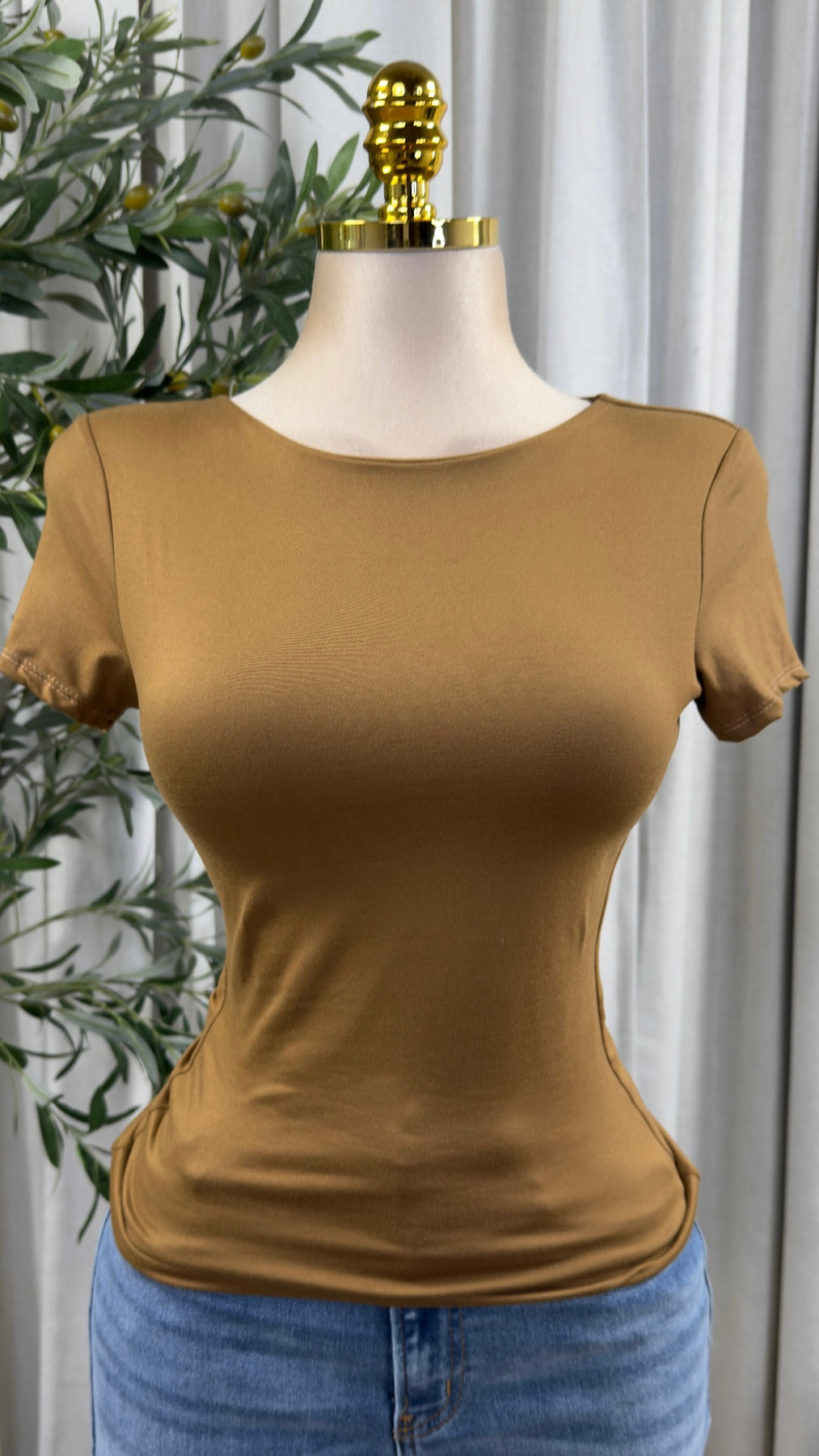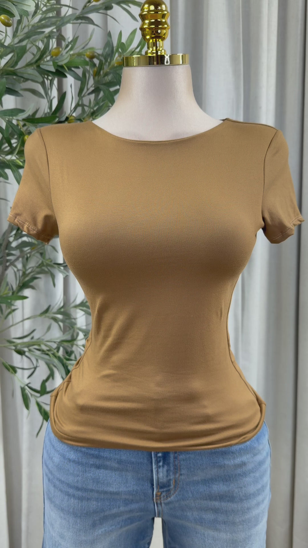 SHORT SLEEVE DOUBLE LINED ROUND NECK TOP