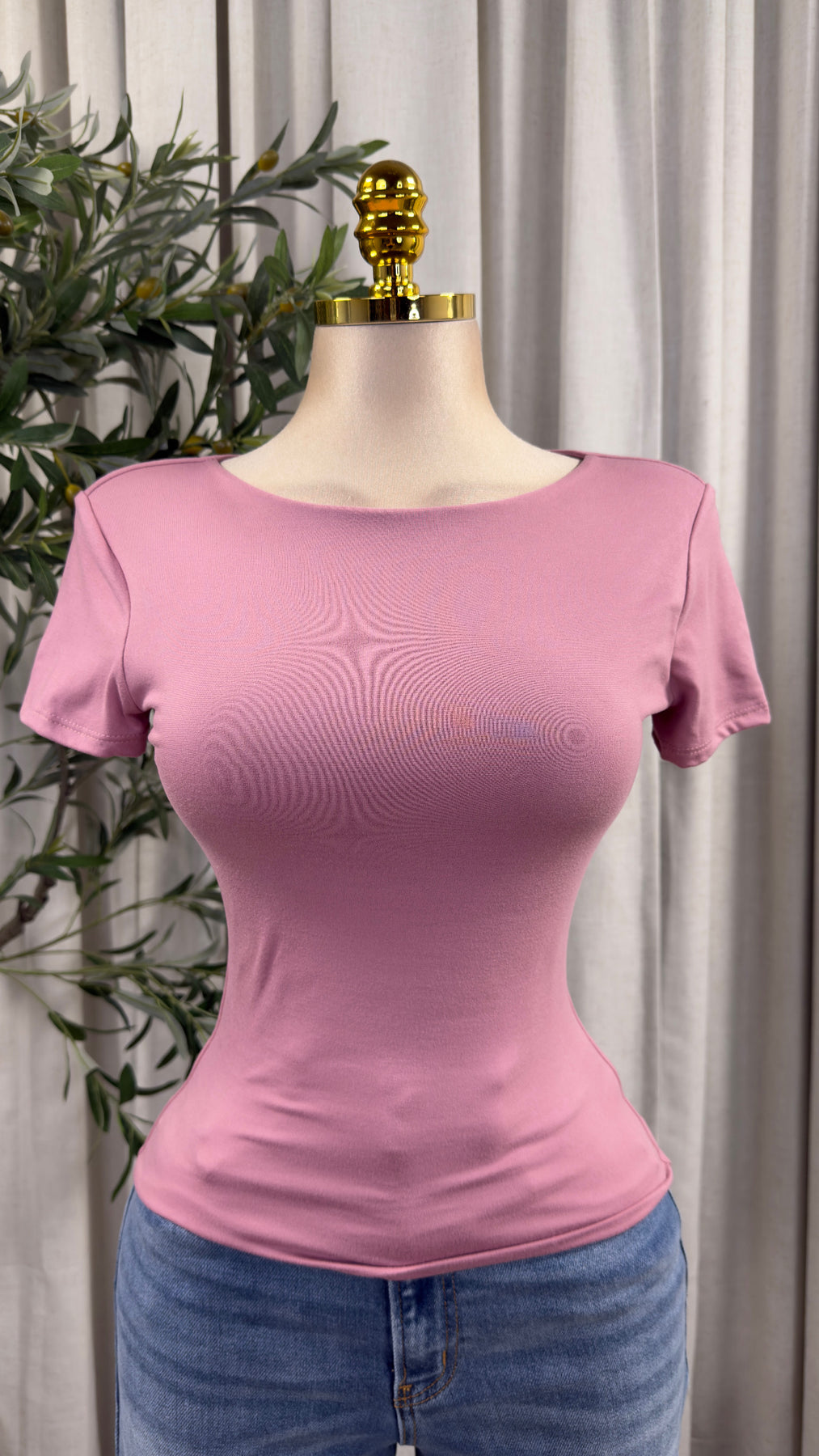 SHORT SLEEVE DOUBLE LINED ROUND NECK TOP
