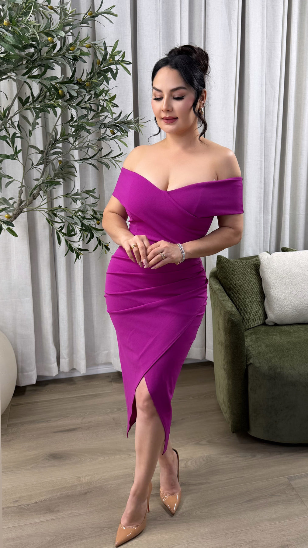 Top quality. Off the shoulder ruched wrap dress